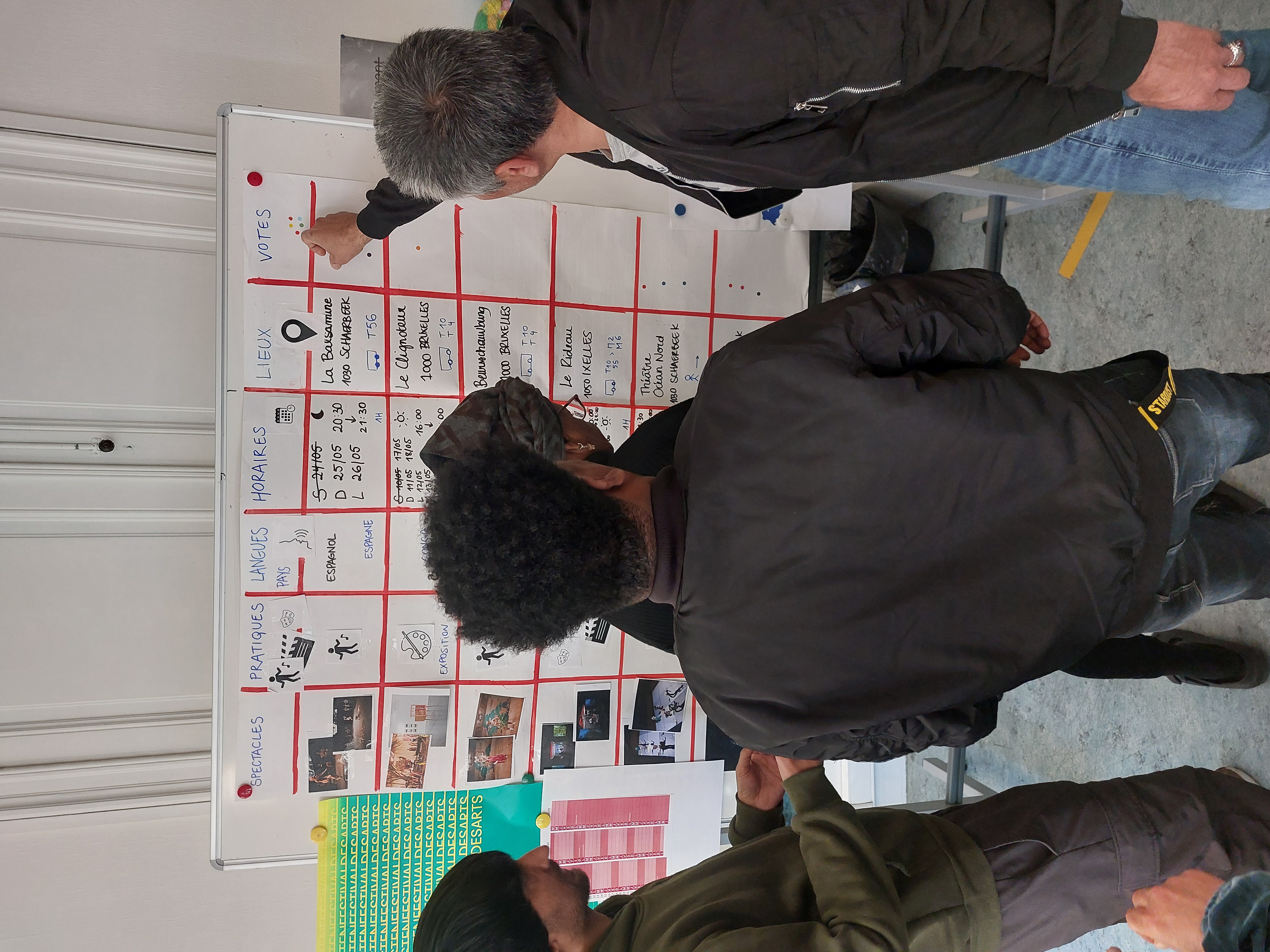 Nous avons mis en place des coanimations et abordé la notion de culture à l’aide de photolangages puis découvert ce qu’est un festival, les lieux culturels dans Bruxelles qui accueillent les différentes formes artistiques et enfin posé un choix collectif sur non pas une, mais deux sorties culturelles ! Une exposition au Clignoteur et un spectacle à Océan Nord un jour férié !