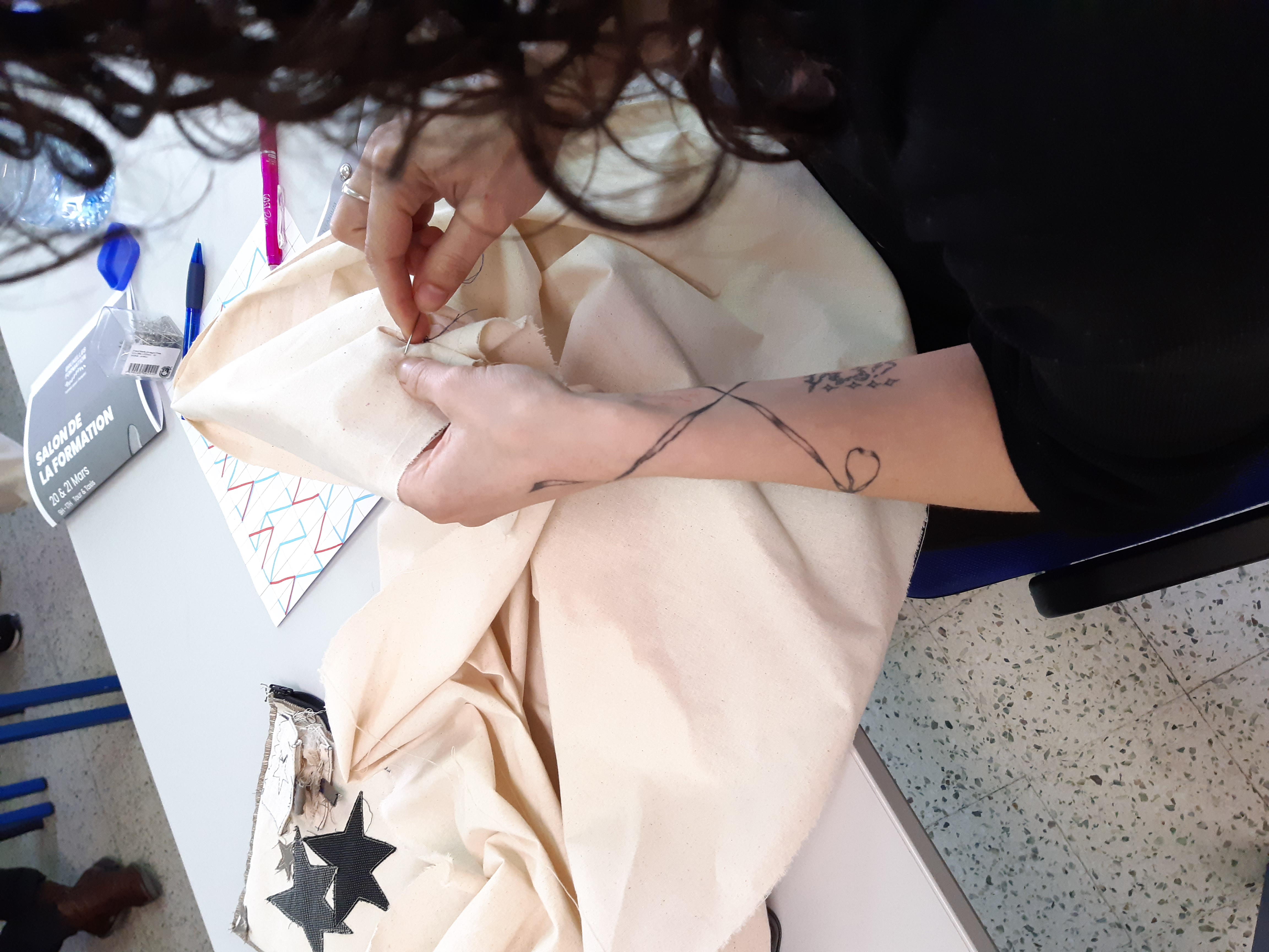 En co-animation, une série d’animations se sont déroulées et ont donné lieu à une prise de décision avec les participant·es autour d’une pratique artistique à explorer ensemble. Le choix du groupe s’est porté sur la couture.