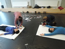 Pour approfondir notre exploration de la culture, nous avons tissé un partenariat avec Les Brigittines. Ce lieu culturel du quartier nous a accueillis à bras ouverts. Nous y avons rencontré les membres de l’équipe et découvert leurs différents métiers, les salles, les ateliers lumière, les loges,… et nous les avons également accueillis au Caria afin de leur faire découvrir le lieu de cours et d’atelier. Ce fut l’occasion de leur partager nos premières expériences d’exploration de la culture. Nous sommes ensuite retournés régulièrement aux Brigittines pour travailler.