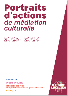 Pour cette quatrième publication Portraits d’Actions de Médiation culturelle, nous avons gardé la forme d’une farde, qui voyage sous le bras, et des portraits qui s’affichent !