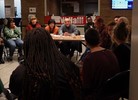 - Avec en après-midi, l’inauguration de notre exposition de [27 portraits] qui rappellent le besoin vital d’être ensemble, un besoin commun à tous les humains. Puis une série d’ateliers sur notre thématique de « l’Effacement du collectif » pour retisser les fils ensemble. Enfin, un Slow Dating qui a fait émerger des actions de médiations à partager entre travailleur.euses sociaux.ales et culturel.les.