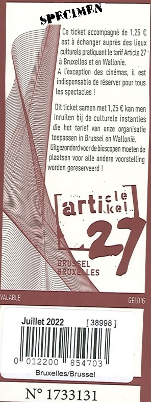 Maar het krijgt wel een waarde vanaf het moment dat u het aanbiedt om uw toegang te betalen. Niet enkel omdat u dan slechts 1,25 € betaalt, maar ook omdat de culturele organisator alle ontvangen tickets naar Artikel 27 # Brussel zal terugsturen en er een kleine terugbetaling per ticket zal voor vragen.